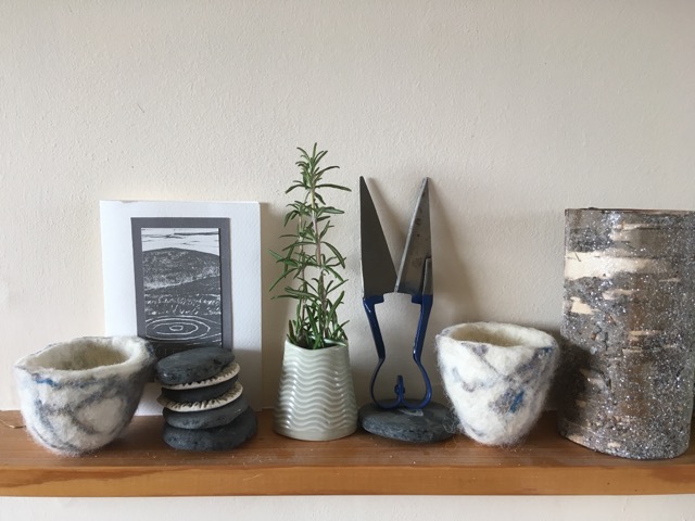Molagan are felted soaps, handmade in my studio on North Uist. Use them to gently cleanse and exfoliate your skin. They work as an all in one soap bar and woolly sponge, The woolly felted layer also makes the bar lasts longer. The soap is handmade and the wool is from local sheep. ‘Yarnover’ (yarn waste) from Hebridean spinners and weavers, provides a glimpse of colour.